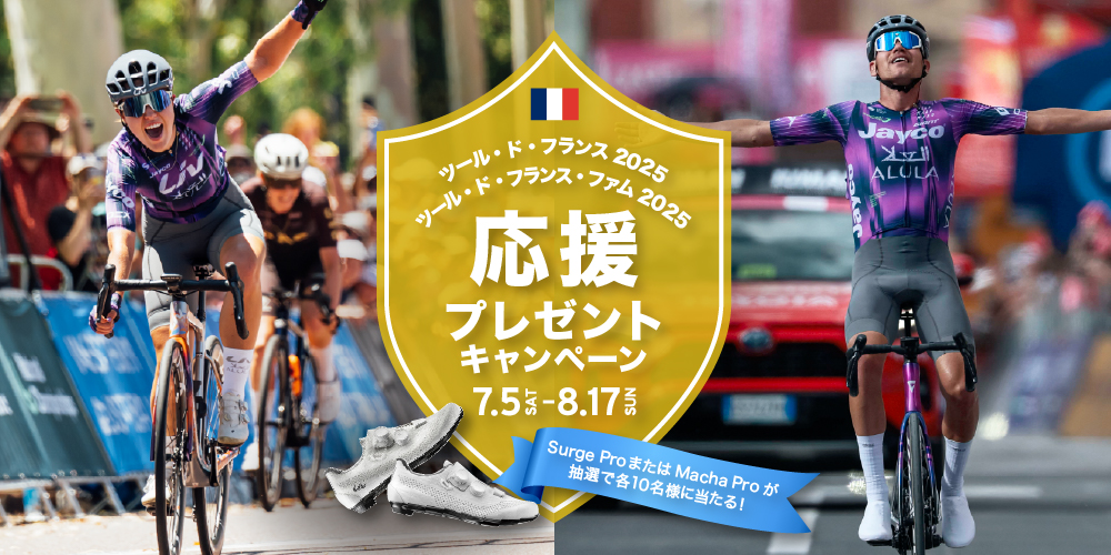 「ツール・ド・フランス/ツール・ド・フランス・ファム応援 プレゼントキャンペーン」では、7月5日(土)~8月17日(日)の期間内に、GIANT Propel、TCR、Trinity、Defyの最高峰グレード「Advanced SL」モデルをご購入・ご予約されたお客様の中から抽選で10名様に「GIANT Surge Pro」を、Liv Langma、Enviliv、Avail(Carbonモデル)、Avowをご購入・ご成約されたお客様の中から抽選で10名様に「Liv Macha Pro」をプレゼントいたします。