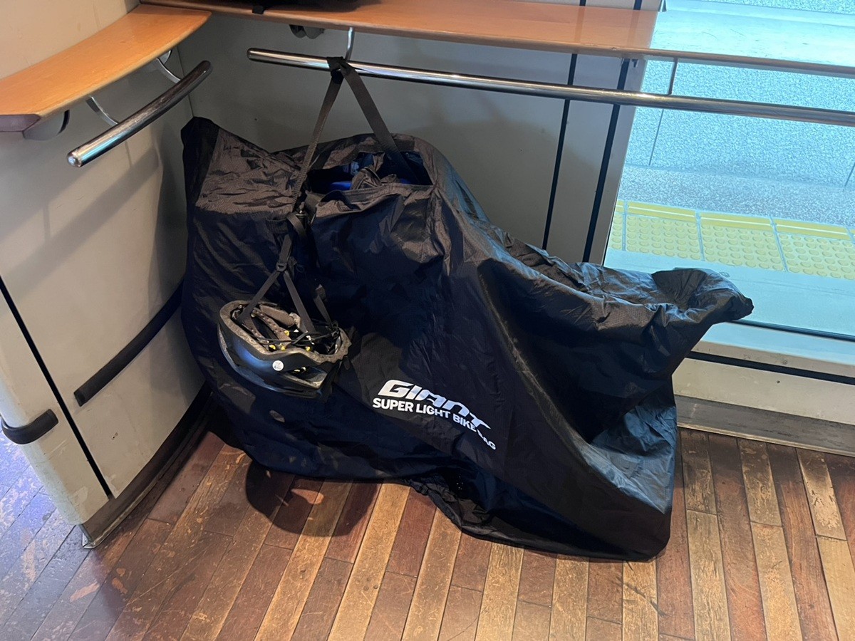 帰りは特急みどりに乗車。デッキスペースが広く輪行も楽々できました。