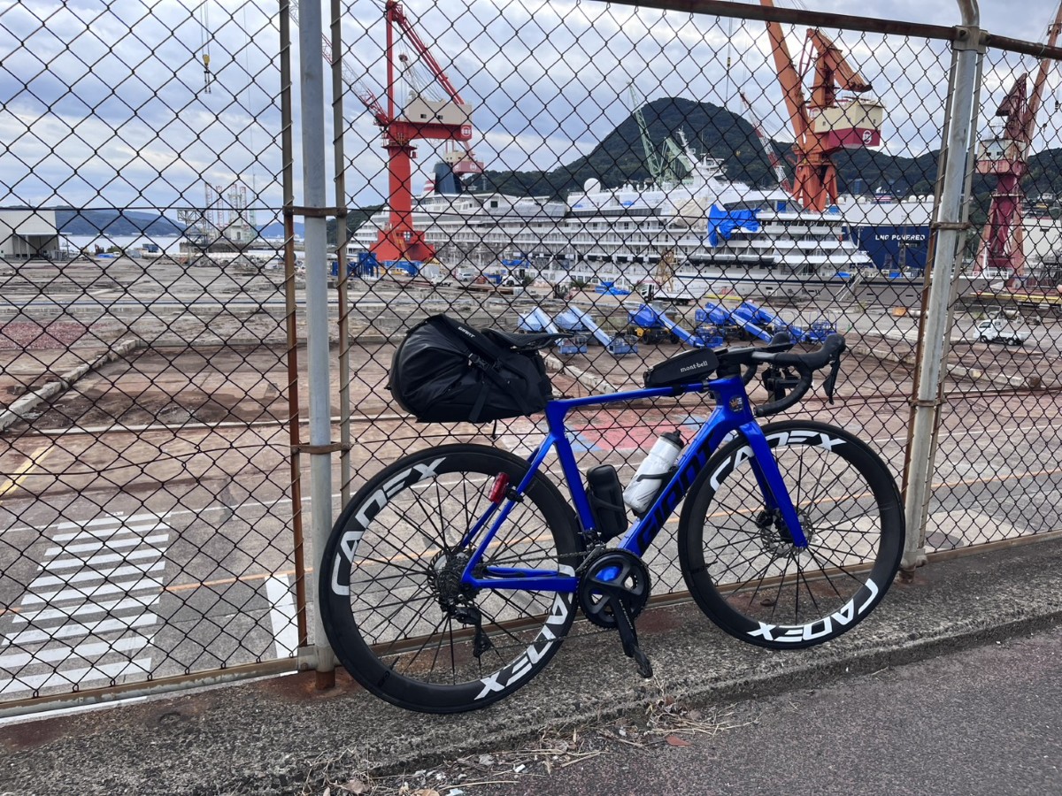 道中の造船所で飛鳥Ⅱが止まっていたので記念撮影