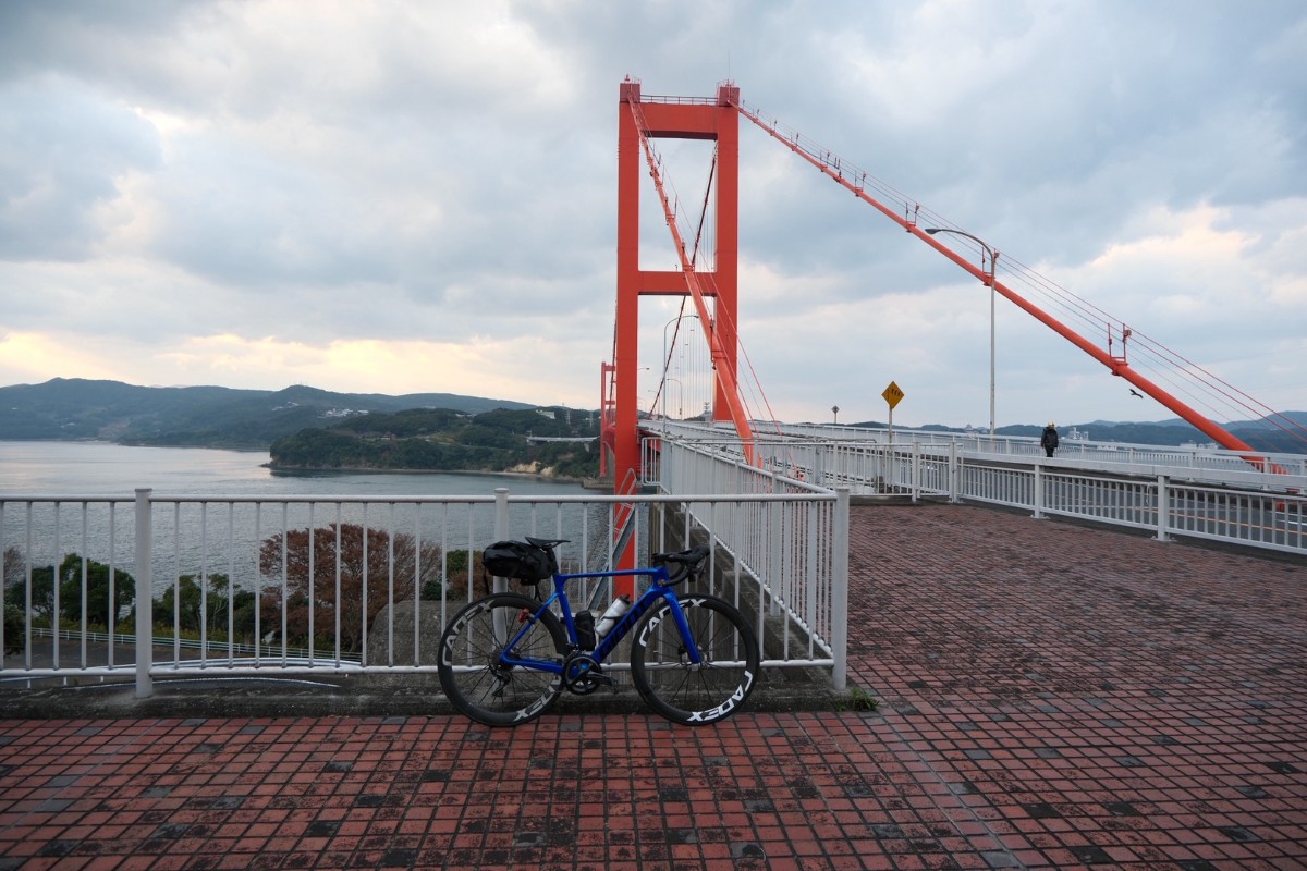 平戸大橋に到着。カリフォルニアのゴールデンゲートブリッジのような赤色です。
