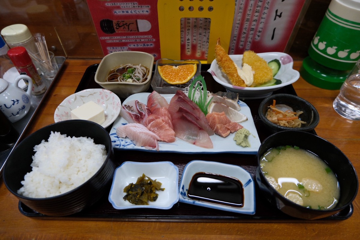 なんとこの定食、中央の刺身のおかわりが無限にできます。