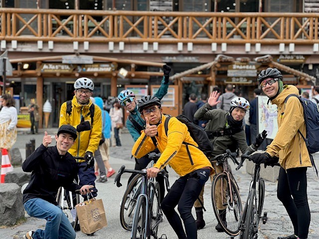 当日は輪行組は富士山駅、自家用車組は富士北麓公園で集合し、さっそく記念撮影です!
