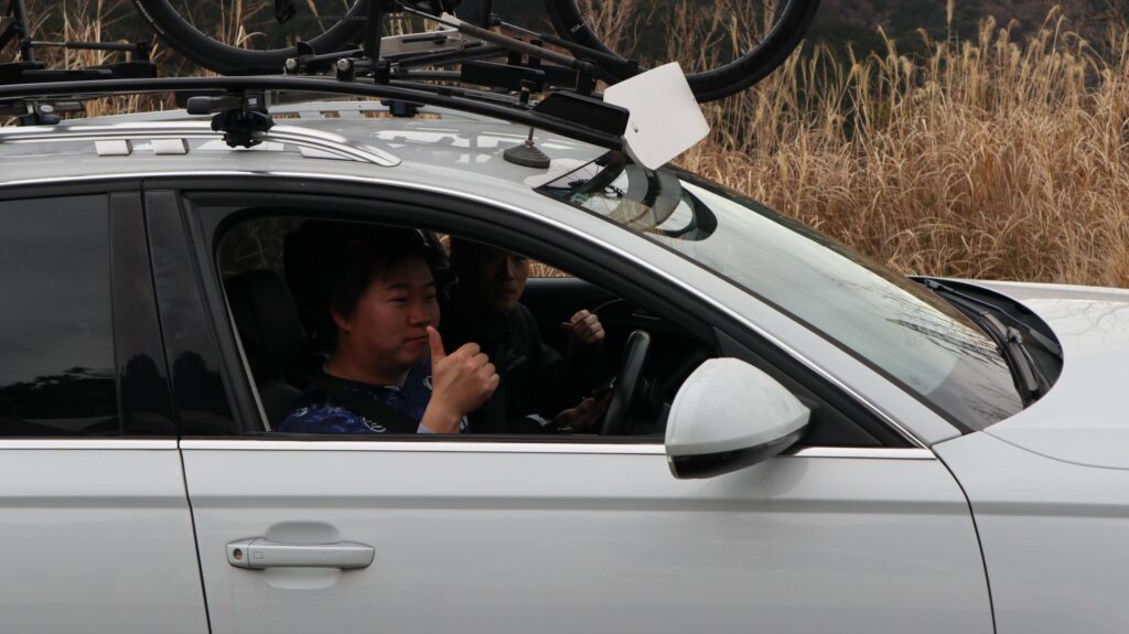 もうちょっと走りたかったな~と思いつつサポートカーに乗り先を走る皆さんを追いかけます