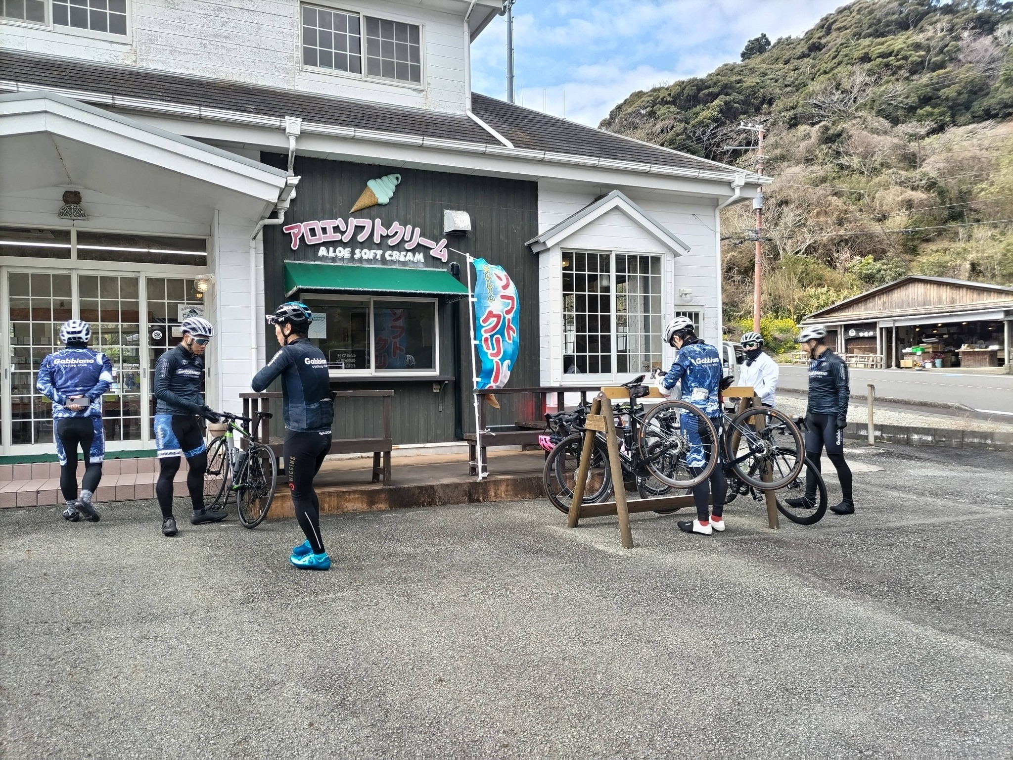 スタートからおよそ16キロ地点、南伊豆アロエセンターで休憩します