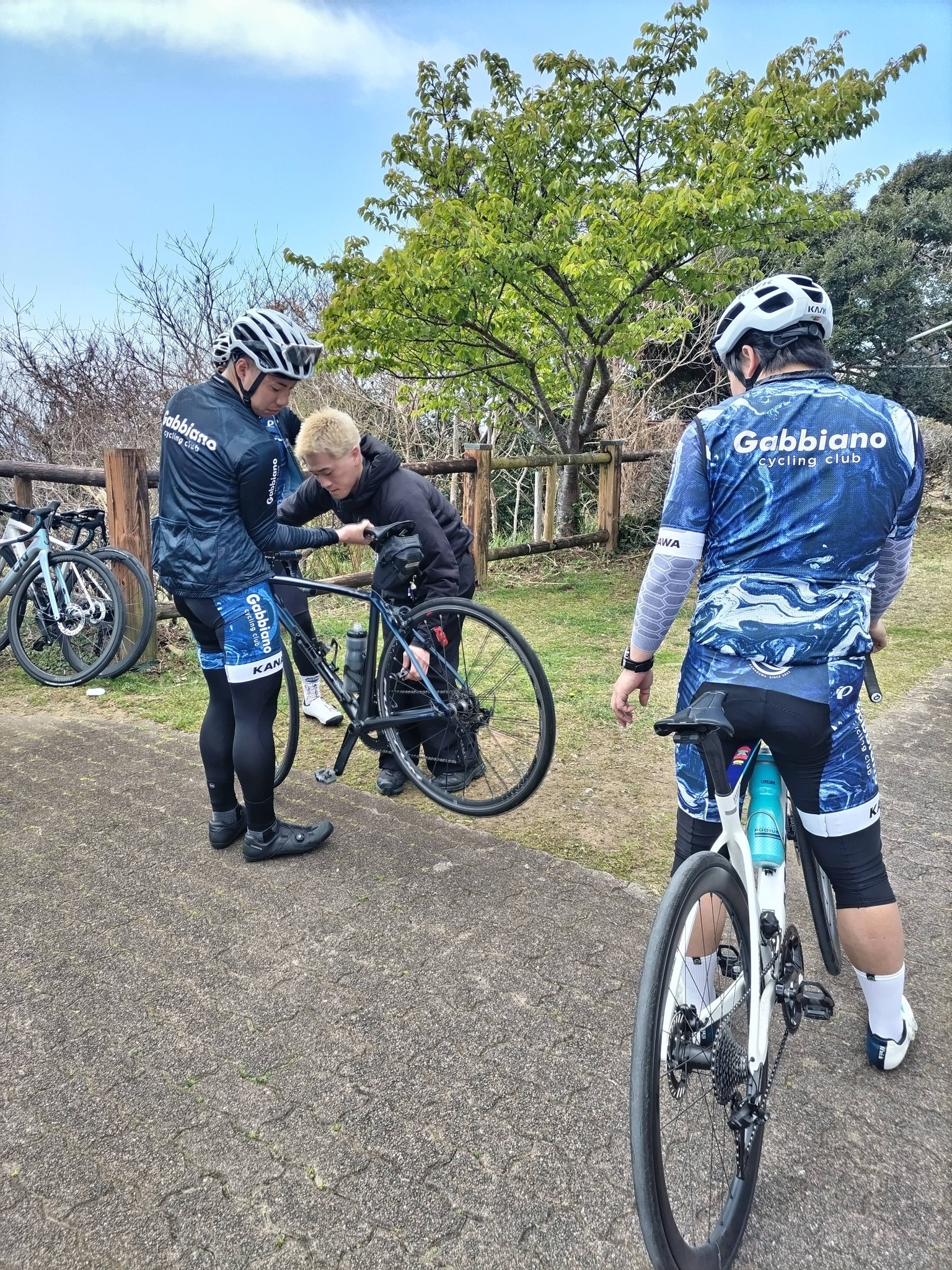 距離的には早めですが今回のサイクリングコースはアップダウン多め、休憩スポット(補給・トイレなど)もあまりないので休めるところで休みます