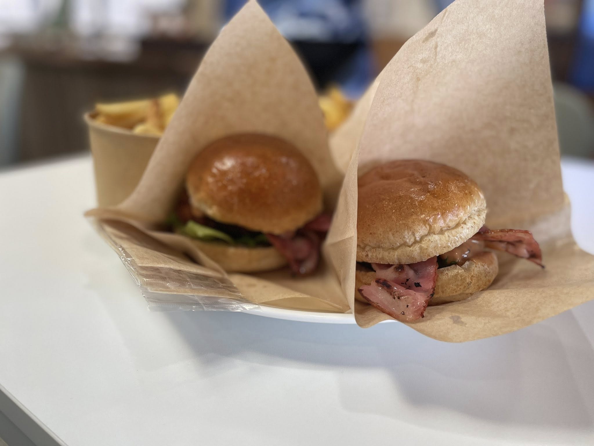 出来立てハンバーガーにポテトは揚げたてアツアツで美味しかった~