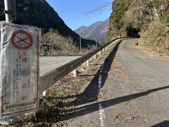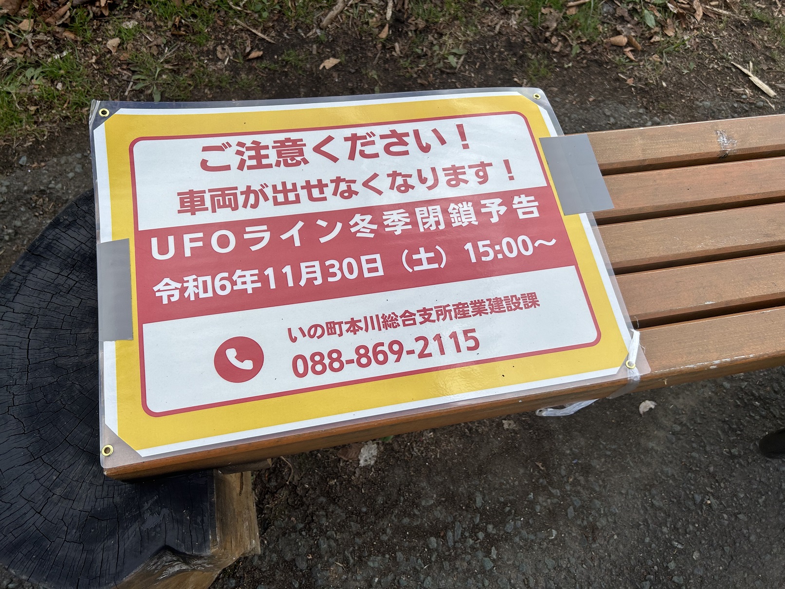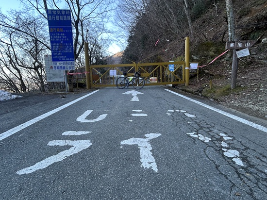 当たり前ですがゲートは閉まっております。なお、UFOラインを経た先、よさこい峠側のゲートも閉まっているほか、愛媛県久万高原町の面河渓から土小屋に至る石鎚山スカイラインも冬季閉鎖期間中です。