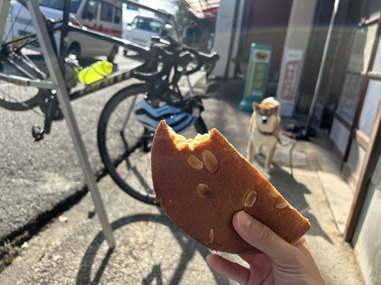 そんなこんな順調にペダルを回して、久しぶりの金子商店さんに立ち寄り、おなじみの菓子パン休憩タイム。