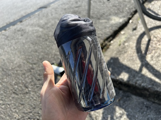 とはいえ、この日はハンドルバーバックを家族が使用中。ある程度小さく畳めるとはいっても、ジャージのバックポケットに収納すると少し邪魔なんだよなぁということで。何か良いものないかなぁとキッチンを見渡して閃いたのがコレ。
