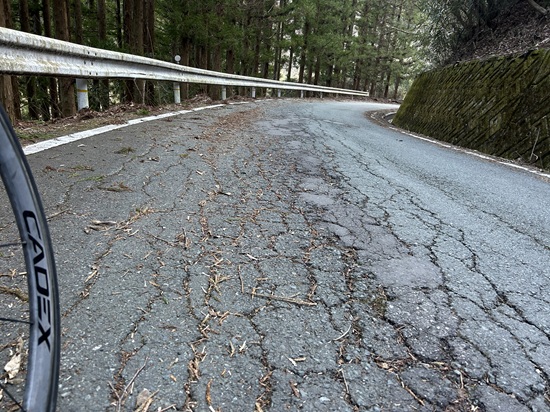 路面は全体的にガビガビしていますが、愛媛県側から登るよりもヘアピンカーブが多く、平均勾配が緩いほか、普通車でしたらギリギリ2台並べる程度の道幅があります。UFOライン解放期間中は利用者の多いルートでもあります。