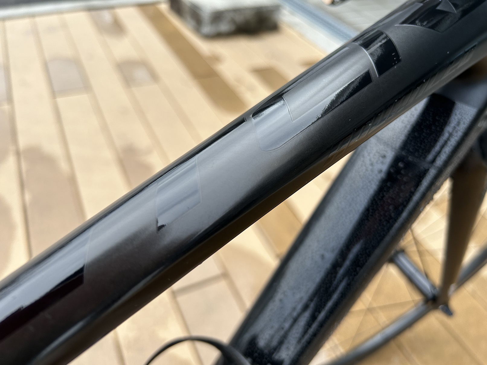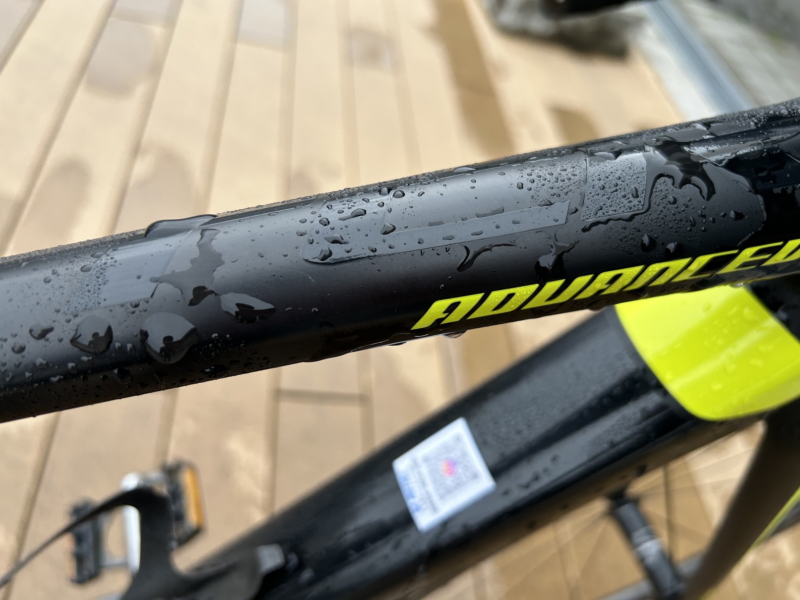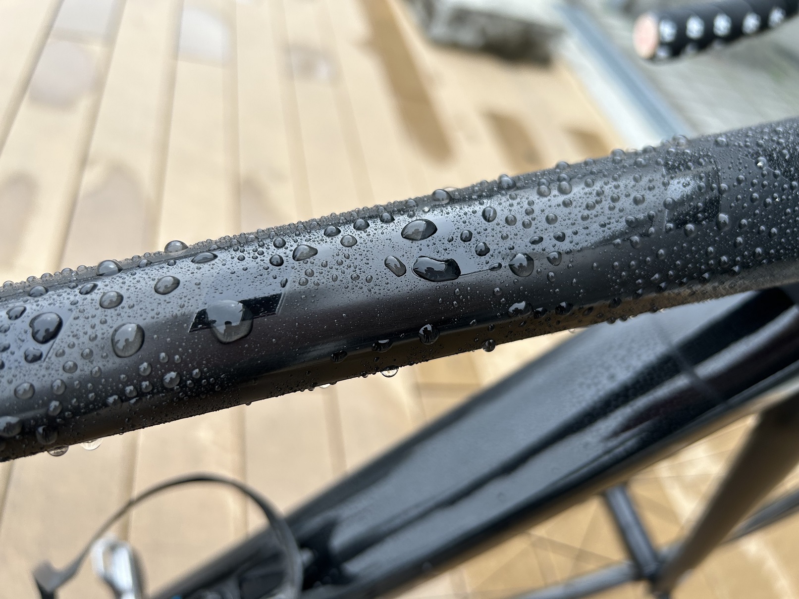 艶消し塗装のフレームにも施工可能です。深みのある艶に加えて驚くほどの撥水性能が備わり、雨天走行後の汚れも落としやすくなります。