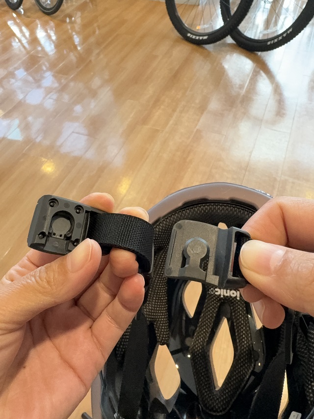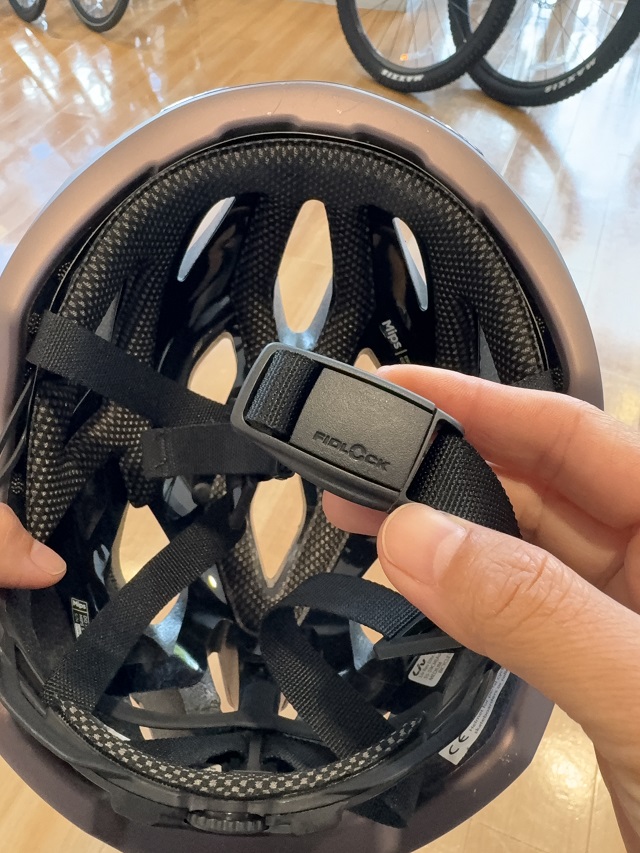 このカラーも充分推しポイントですが、もっとこのヘルメットをお勧めしたくなるポイントはこちらのバックル!