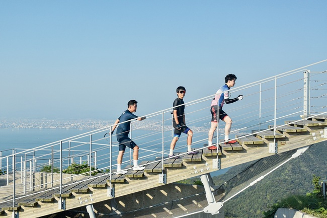 この時間帯ですと亀老山展望公園までの道は日陰が多く、見晴らしのよい後半区間は吹き抜ける風が気持ちいいです。