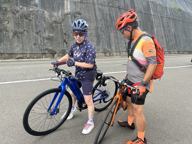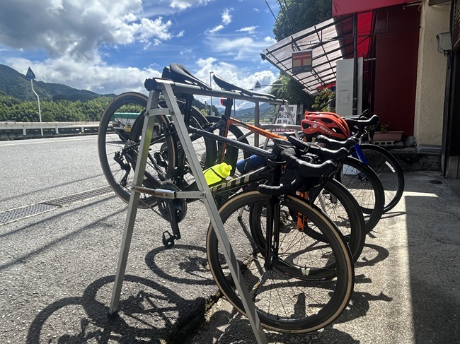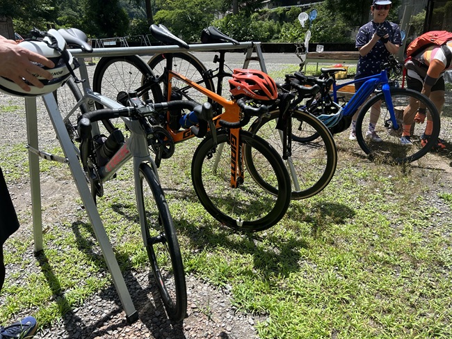 わたくしを含めて3名はロードバイク、おひとりはEバイクにて、いざ夏のサイクリングに出発です。