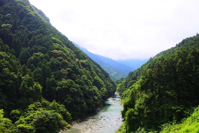 川沿いを吹く風と木陰がとても涼しく、体感としては30度を下回るぐらいの環境でゆっくりペダルを回します。ぶっちゃけますが、同日のしまなみ海道を走るよりも、数倍は涼しく感じました。やっぱり夏は山しか勝たん。