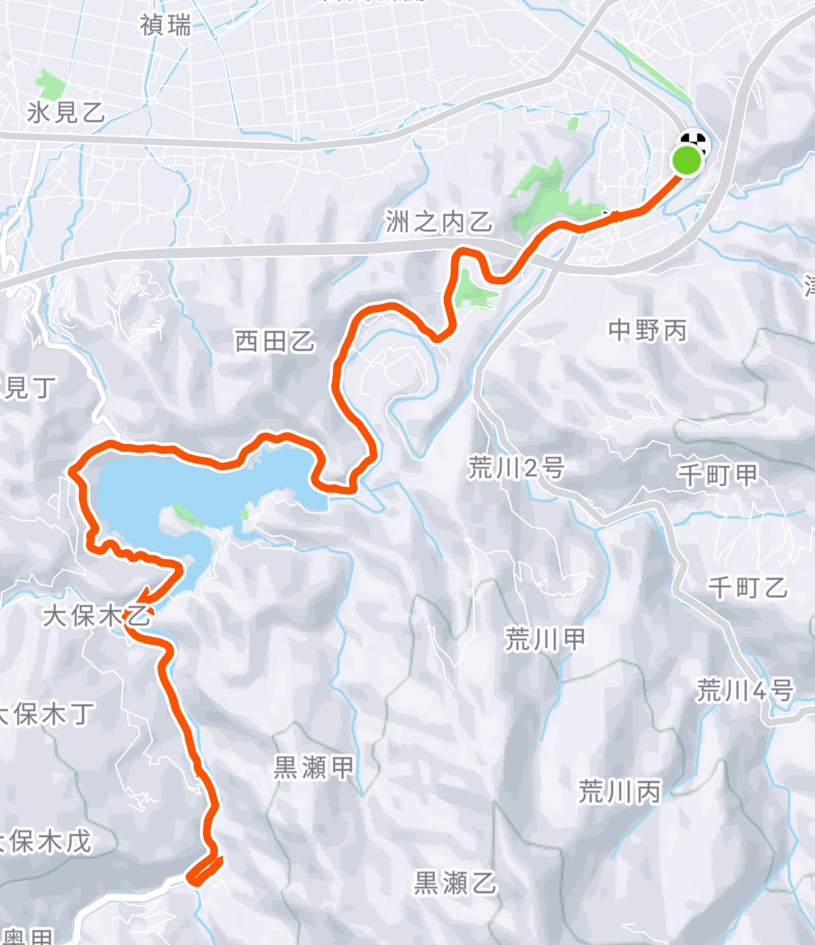 トリム公園を出発しまして、まずは黒瀬ダムまでゆるーーいヒルクラムです。なお、今回は15km/h程度のペースで登り区間を走行しました。