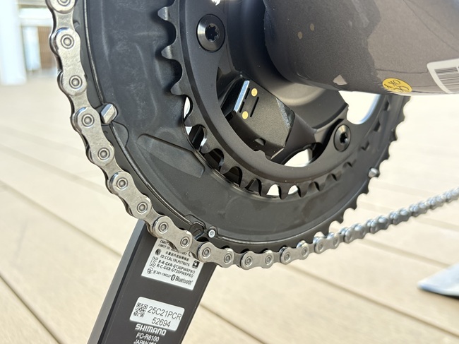 このUltegra(クランク長170mmギア構成52/36T)のクランクセットには、GINAT製の左右計測型パワーメーター「POWER PRO」を搭載しています。