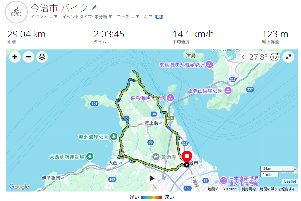 食事のお店からジャイアントストア今治までは数キロ。しゅっと帰って来て、はい!ゴール!
