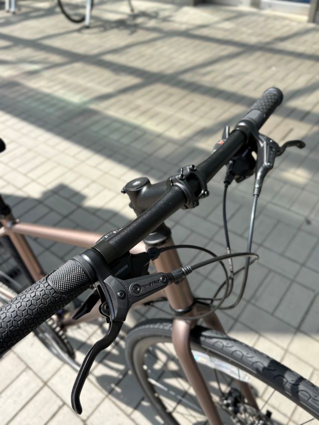 ディスクブレーキを搭載し、フレーム以外は黒で統一されており、すっきりした印象です。