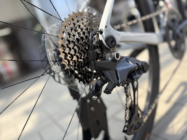 リアカセットスプロケットのローギアは、なんと39Tというグラベルロード並みの仕様となっております。このギア比であれば、登れない坂道を探す方が難しいかも知れませんね。