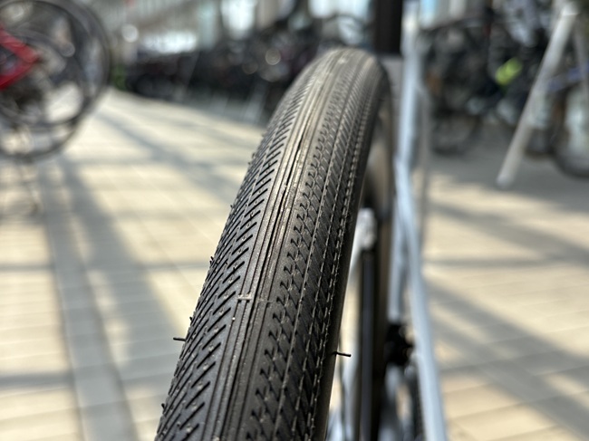 このタイヤの耐摩耗性と耐久性は凄まじいものでして、経験上5000kmをゆうに超える耐摩耗性を備えています。また、細かい溝を配置したトレッドパターンは、荒れた路面、とくに砂や小石、水の浮いたコンデションでのグリップ力に優れています。