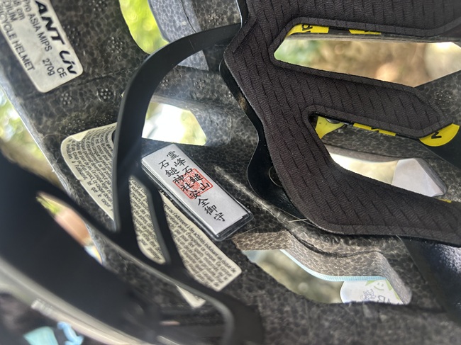 ヘルメットに貼ってある古い御守も新しい御守に交換しました。