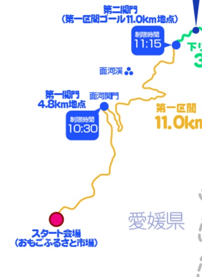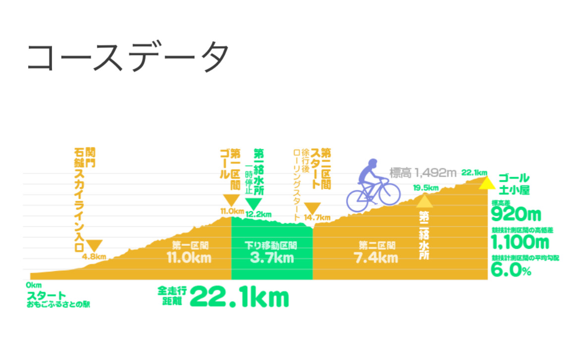この下り区間を除く、第1区間の11kmと第2区間の7.4kmそれぞれの合計タイムが記録となります。