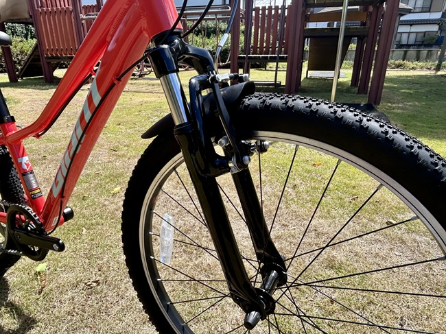 MTBといえばやっぱりこちら。可愛いフロントサスペンションフォークも装備しています。