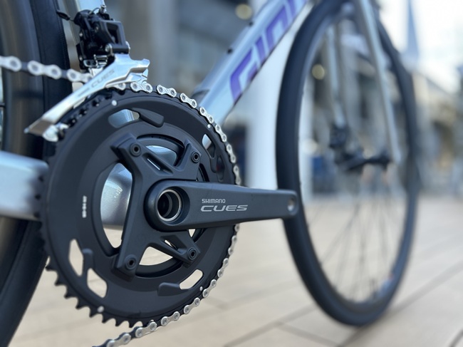 ギア及びブレーキパーツには、従来の同等グレードに対して3倍の耐久性を備える、シマノ社の新コンポーネント「Cues」を搭載しています。耐久性の高さはランニングコストの面でもメリットになりますね。