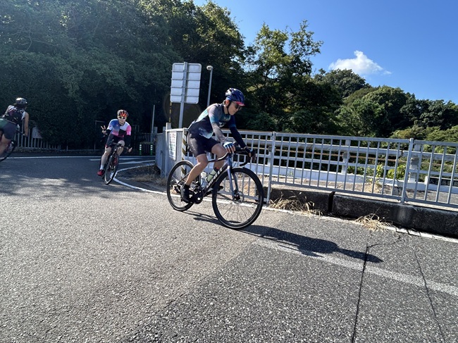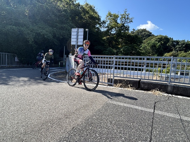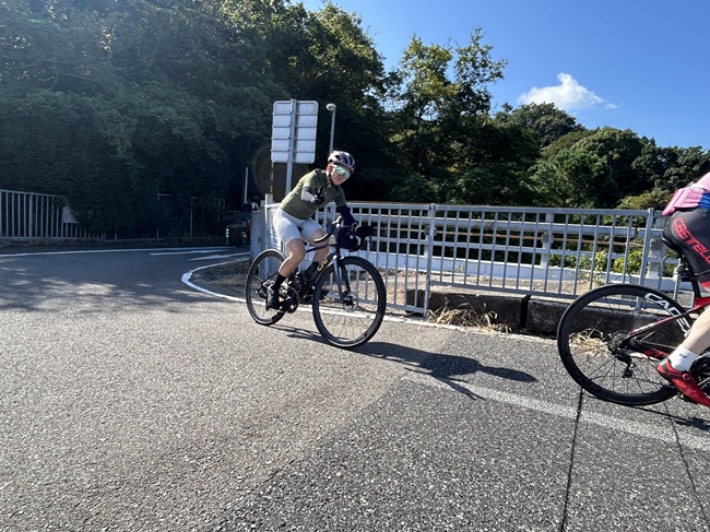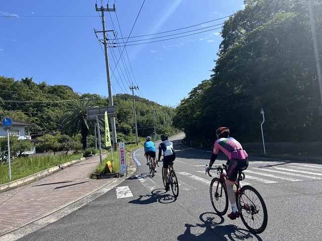 宮窪峠までの登り、何度も競り合ってくるスタッフ清水を意地で振り切ったスタッフ竹内。このあとも坂道アタックがはじまったり、激坂チャレンジしたりと、前半にがっつりペースを抑えて蓄えたエネルギーを放出する展開に。あまり単調すぎるよりはこれぐらいの変化があったほうが、ロングライドも楽しかったりしますよね。