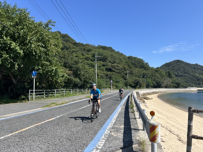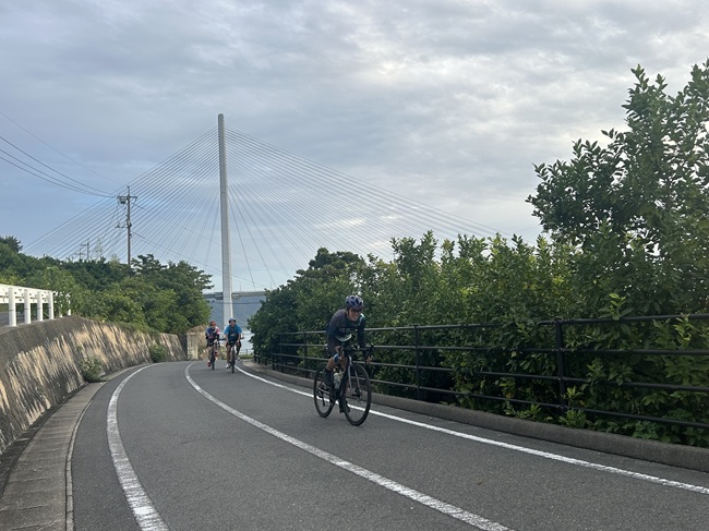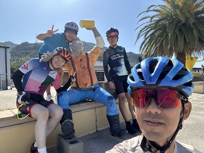 大島の宮窪峠で待ち伏せしていた佐藤店長がパーティーに加わりました。この日は途中まで一緒に走って折り返すとのこと。(折り返した後、帰りがめっちゃしんどかったらしいです)