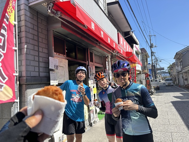 しまなみ海道は黙々とペダルを回して走ることだけが魅力ではありません。ちょうど小腹が空いてきたところですし、瀬戸田のしおまち商店街で人気店のコロッケをいただきますよ。