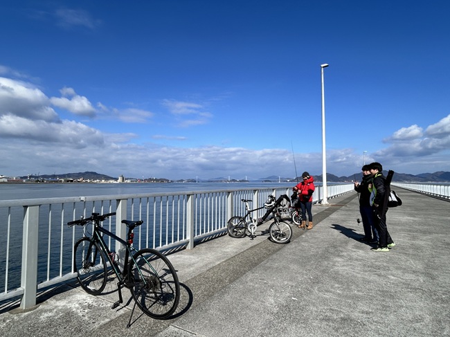 晴れた日の休日は自転車に乗って釣りに行こうよ! こんにちは。今治店スタッフの川村です。ということで、今回は普段から釣りを嗜んでいるスタッフ4名でRide&Fishに出掛けましたよ