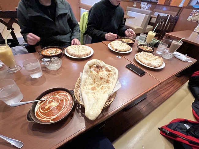 富田新港のすぐ近くにあるお店でカレーをいただきます。ちなみにわたし以外はチーズナンにアップグレード。