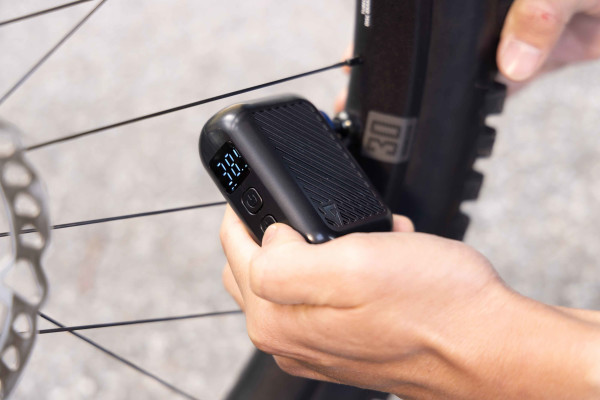また、初めて使用するタイヤを装着した際には、気持ちよく走ることができる空気圧セッティングを探すため、積極的に空気圧を調整するようにしています。こういった時に電動式ミニポンプだと作業がとっても楽なんです。デジタル式のエアゲージを搭載する電動式ミニポンプでしたら、空気圧をより正確に管理することができます。