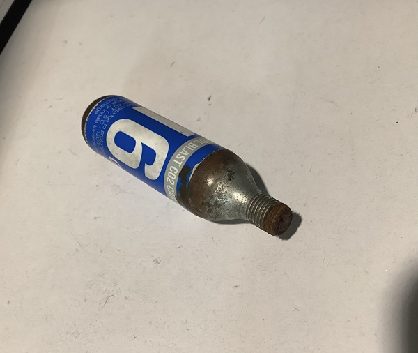 また、手動式ポンプよりも素早く空気を充填できる使い切りのCO2ボンベも同様で、わたしのボンベなんてサドルバックの中で錆びてましたよ。さらに、このCO2ボンベで充填した空気は成分的にタイヤやチューブのゴム成分を透過しやすく、けっきょくは後でフロアポンプを使って空気を入れ直さないといけないんです。