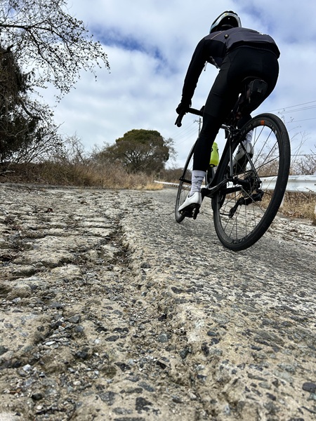 「路面の荒れた場所では空気圧を下げます」