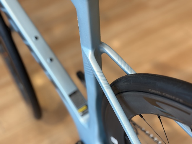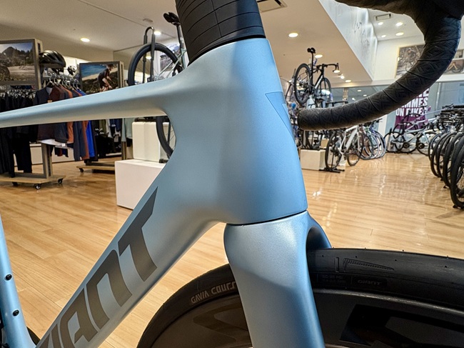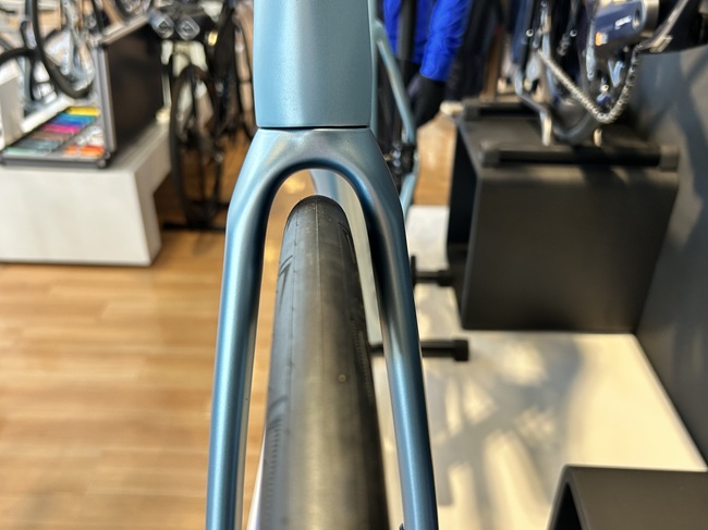 フロントフォーク及びフレーム本体に設けられたクリアランスは、最大32mm幅のタイヤを想定しています。エアロロードに乗りたいけど、どちらかと言えばロングライド派という方にも嬉しい仕様です。