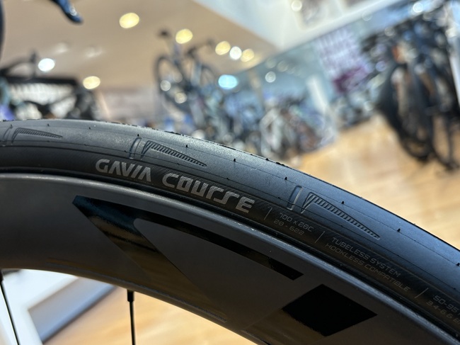 車体前方で発生する空気抵抗を考える上で、忘れてはいけないのがフロントホイールとタイヤのマッチングです。その点につきましても第4世代Propelは抜かりがございません。50mmハイトのフックレスカーボンリムを採用する新型「SLR 1 50 Carbon Disc」に装着されるタイヤは、新しいトレッドパターンと 240TPI ケーシング、路面コンディションを問わず優れたグリップ力を発揮する RR-S コンパウンドを採用した新型「Gavia Course 」です。