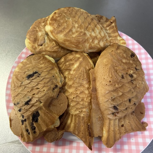 こんなこともあろうかと、実はわたくし自前の焼き型で作っておいたんですよ!材料を準備する時間が無くて市販のホットケーキミックスと粒あんで作ったので、お味の方は保証できませんが、お土産にひとつずつお渡し致しました。