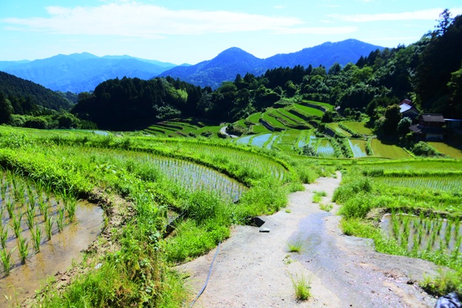 標高は約500m、平均斜度20%の場所に257枚の棚田が広がります。5月〜6月に水が張られて、ご覧のように美しい景観を作り出します。