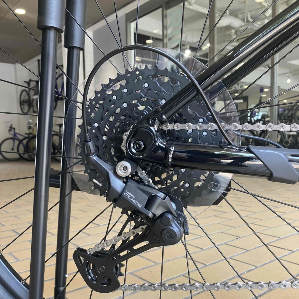 Shimano Cues リヤ11-48 × フロント36T。3.27~0.75のローワイドなギヤ比でフロントシングルながらきつい登りにも対応!