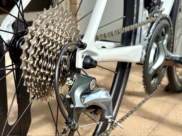同じTiagraコンポのまま、34Tのスプロケ・ロングケージのRDとすることで、1:1のギア比が得られるKOM(キングオブマウンテン)仕様となって帰ってきました!