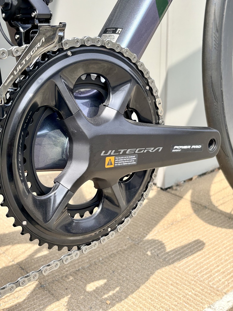 12速のアルテグラDi2コンポ(クランクは両側パワーメーター付き)。