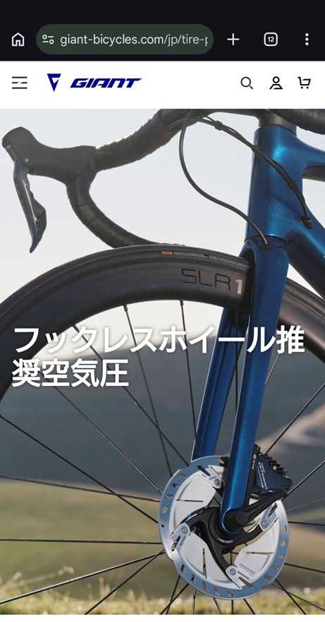 サイトが見つからない方はこちら→「https://www.giant-bicycles.com/jp/tire-pressure」