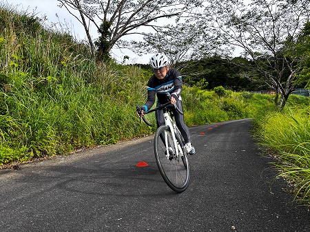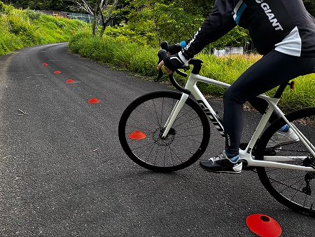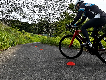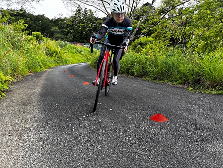 少し坂道ですが、コーンを並べて登ったり下ったりしました。