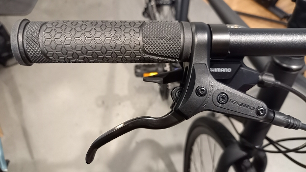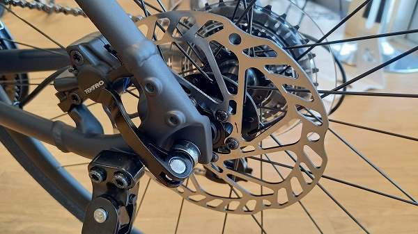 ブレーキは前後とも、おなじみの油圧ディスクブレーキ。