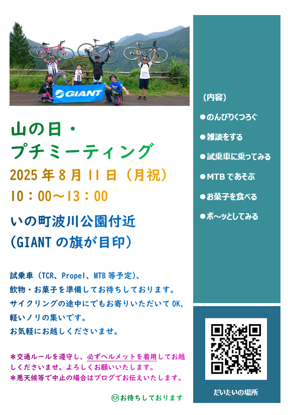 中止のお知らせ「山の日・プチミーティング」2025年8月1日
