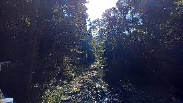 川沿いに山を下ります。