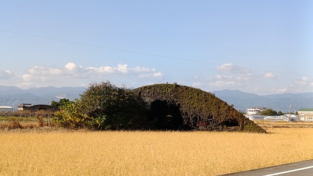 戦時中、空襲から軍用機を守るための格納庫。